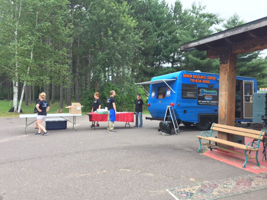 Namekagon Transit was at Louie’s Landing in Moose Lake with Sawyer Co. Senior Resource Center’s Timber Grill on Wednesday as an outreach effort to serve seniors in rural isolated places around Sawyer County.